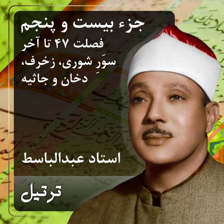 ترتیل استاد عبدالباسط محمد عبدالصمد، جزء 25 باترجمه آیت الله مكارم شیرازی، می باشد ،موضوع محوری سوره شوری مسئله وحی است و موضوعات دیگری مثل توحید، صفات مؤمنین و كفار و معاد از دیگر موضوعات آن است...