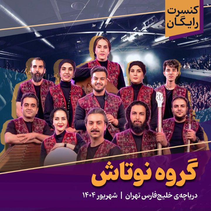 در شهریور 1404 و همزمان با هفتهی وحدت به همت سازمان فرهنگی و هنری شهرداری تهران، تعدادی كنسرت رایگان در محل دریاچهی خلیجفارس تهران برگزار شد. بخشهایی از كنسرت گروه نوتاش را میشنویم كه در تاریخ ...