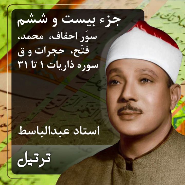 ترتیل استاد عبدالباسط محمد عبدالصمد، جزء 26 باترجمه آیت الله مكارم شیرازی، می باشد ،عواقب بیتوجهی مشركان به هشدارهای قرآن و داستان و سرزمین قوم عاد یعنی قوم حضرت هود(ع) در این سوره احقاف بیان شده است...
